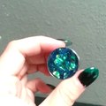 This set of plugs is a double flare purple anodized steel that can be made to order in sizes 00g (9mm) - 1" (25mm). It has a look to it that reminds one of the galaxy. Each piece is hand made to look like a 3-D glitter galaxy.
