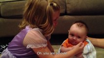 Little girl sad her brother must grow up