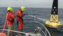 Formation SNSM PALAVAS 08-2014 - Entraînement à l'utilisation de la pompe à incendie et à l'utilisation de l'annexe pour préparer un remorquage.