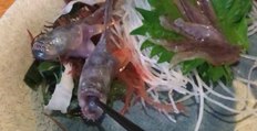 Peixe vivo ataca palito de madeira em restaurante japonês