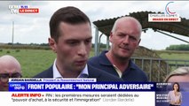 "Rien n'est gagné", estime Jordan Bardella en campagne à Chuelles (Loiret) dans une exploitation agricole