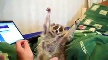 Course poursuite entre un ouistiti à oreilles blanches et un chien