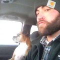 Le regard du chien aprés une petite tape de son maitre