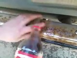 Cleaning a dirty car with Coke