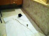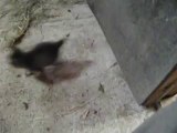 bébé chat trouvé , mis dans la cage à rongeur pour quarantaine .