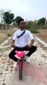 Fat Man doing stunt on Bike