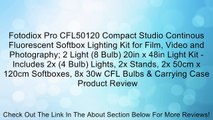 Fotodiox Pro CFL50120 Compact Studio Continous Fluorescent Softbox Lighting Kit for Film, Video and Photography; 2 Light (8 Bulb) 20in x 48in Light Kit - Includes 2x (4 Bulb) Lights, 2x Stands, 2x 50cm x 120cm Softboxes, 8x 30w CFL Bulbs & Carrying Case