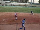 1ste slagbeurt in tweede wedstrijd. 3 honkslag op een hit-and-run. Let op de catcher: pitch-out.