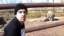 Gergedanın Üzerine Binerek Rodeo Yapan Genç