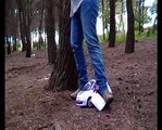Car Crush with platform boots and jeans in the street