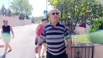 Bikinili bir yarışmacı, elindeki topuklu ayakkabıyı yüzüne doğru salladığı erkek rakibinin verdiği sert karşılıkla yere yıkıldı. Erkek yarışmacı ardından da yere düşen genç kadının yüzüne yumruk attı.