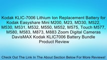 Kodak KLIC-7006 Lithium Ion Replacement Battery for Kodak Easyshare Mini M200, M23, MD30, M522, M530, M531, M532, M550, M552, M575, Touch M577, M580, M583, M873, M883 Zoom Digital Cameras DavisMAX Kodak KLIC7006 Battery Bundle Review