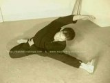 Exercice d'étirement difficile qui permet de travailler sa souplesse d'adducteur, mais qui s'adresse à des personnes déja très souples.