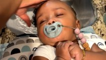 Newborn Gets Hair Shampooed by Nurse