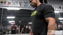 In January 2013, rookie IFBB Pro Antoine Vaillant traveled to Elite FTS in London, Ohio to hook up with his "Mountain Dog" trainer John Meadows for a weekend of hardcore training. In this video, Meadows takes Vaillant and strongman bodybuilder Matt Kroczaleski, through a "Mountain Dog" chest workout. In this video, Vaillant is 20 weeks out from his pro debut at the New York Pro bodybuilding competition to be held on May 25th.