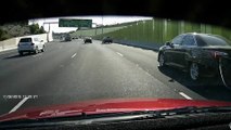 Idiot changes lane over a solid white line at the moment a ute pulls into the lane forcing him back into my lane.