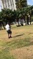 Golfer Takes Quick Break to Catch an Iguana