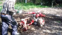 Labour du jardin avec Motoculteur Honda F400 et sa charrue japonnaise