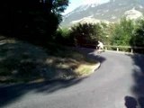 freebord a briancon sur une route en construction.
