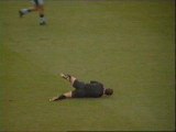 Referee trips over