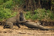 Jaguar ve timsah arasında büyük savaş