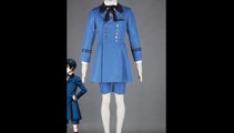 Ran-Mao is a young chinese women character in anime Kuroshitsuji, dressed a short, black and lavender cheongsam decorated with dark-pink petals, and a blue jacket over it. Additionally, she dresses in thigh-high tights, black ballet shoes, and gold anklets with bells. Ran-Mao has large, golden eyes and black hair with thick, square bangs. Her hair is arranged in long braids and cat ear-like buns, accompanied by a pink rose and a golden tassel on the left bun. Black Butler Kuroshitsuji Ran mao Blue Cat Cheongsam Cosplay Costume for sale online at: http://goo.gl/y0aYLt