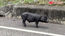 小黑豬國道交流道散步 聽從員警指揮乖乖就逮(警方提供)