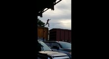 Un jeune court sur le toit d'un train.