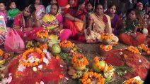 President Rambaran Yadav and anita yadav observing Chhath puja