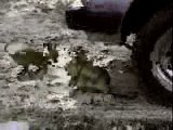 Voiture soufflée par un réacteur.