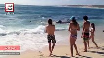 100 سمكة قرش تلتهم حوتاً على شاطئ المحيط الهندى