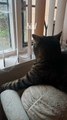 The cat excited about a bird outside
