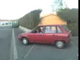 tentative de glisse sur une terrasse enneigé.