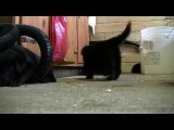 cat paws at frogs in aquarium