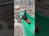 Two Baby Goats Fall Down Slide Together