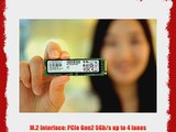 M2 Interface PCIe 30 x4 lanes up to 32Gbs 512MB LPDDR2 DRAM Buffer Memory 3 Year Warranty Supports Standard AHCI driver APM and L12 Power Saving Mode End-to-End Data Protection Supports TRIM Command RoHS Compliant Halogen-Free Compliant Sequential Read 2150MBs Sequential Write 1200 MBs Random Read QD4 90K IOPS Random Write QD4 70K IOPS Works with most motherboards and notebooks with a compatible M2 PCIe interface slot Includes Z97 and X99 motherboards and pre-cylindrical Mac Pro Not compatible with the MacBook MacBook Air or MacBook Pro
