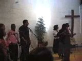 Le chant : "Chantons car Dieu est la" chanté au culte au temple par le choeur.