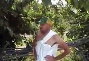 guy is scared of car horn and falls over
