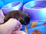 2 weeks and 3 days old French Bulldog puppy playing and peeing in her bed