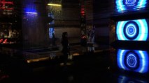 Las Vegas nu-salt laser light show through three waterfall screens