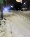 Ils glissent chacun leur tour sur une plaque de verglas