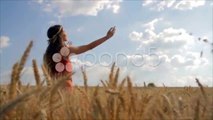 Young Beautiful Woman Beauty Dress Wheat Field Worship Pose Religion Health HD. Stock Footage