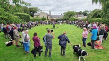 Border Collies Try to Herd Statue