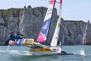 Ce 7 juillet, les concurrents du tour de France à la voile ont enfin pu lâcher les chevaux dans le stade nautique fécampois. Au ras de la plage, sur un terrain de 700m de long, les manches s'enchainent à un rythme soutenu et au final c'est Pierre Pennec sur Groupama qui gagne l'étape de Fécamp et devient du même coup leader du Tour de France à la Voile.
