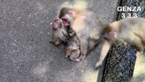 Mom and baby monkey frightened to fight