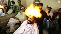 باكستاني يحلق للزبائن بالنار
