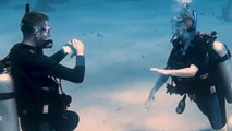 This is probably the most romantic, creative, adventurous and wet surprise wedding proposal you will ever see. Victor Boyle decided to pop the question to his girlfriend Edrea Chua during their scuba dive off of the Tioman Island. Victor holds a pink sign that says, "Will you marry me?" Then the scuba instructor brings the ring and he places it on her finger. They share their first kiss as fiancés all under the sea.