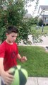 Funny fat kid playing basketball