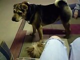 Dog and new puppy playing