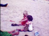 cine film: young children playing on a beach in 1974, no sound